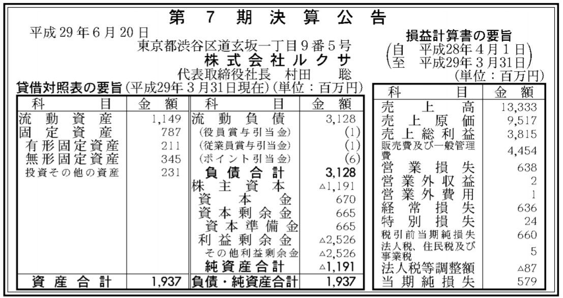 第7期決算公告