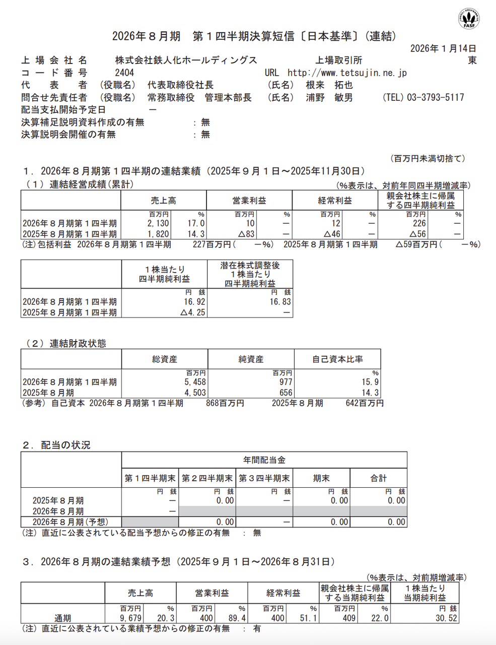 売上高:1545億2700万円(前年同期比+0.4%)
