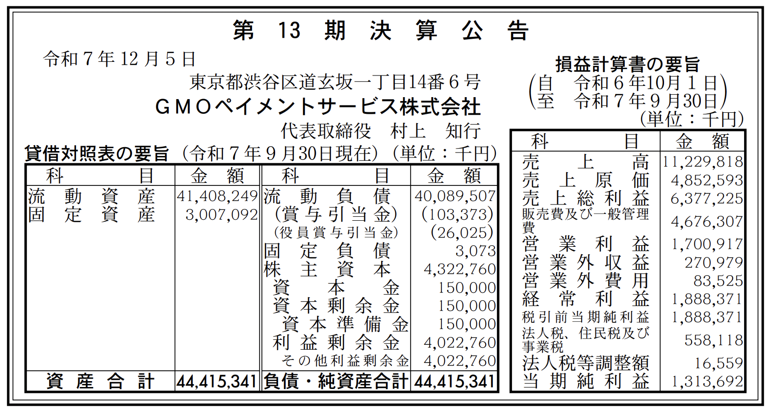 第13期 決算公告