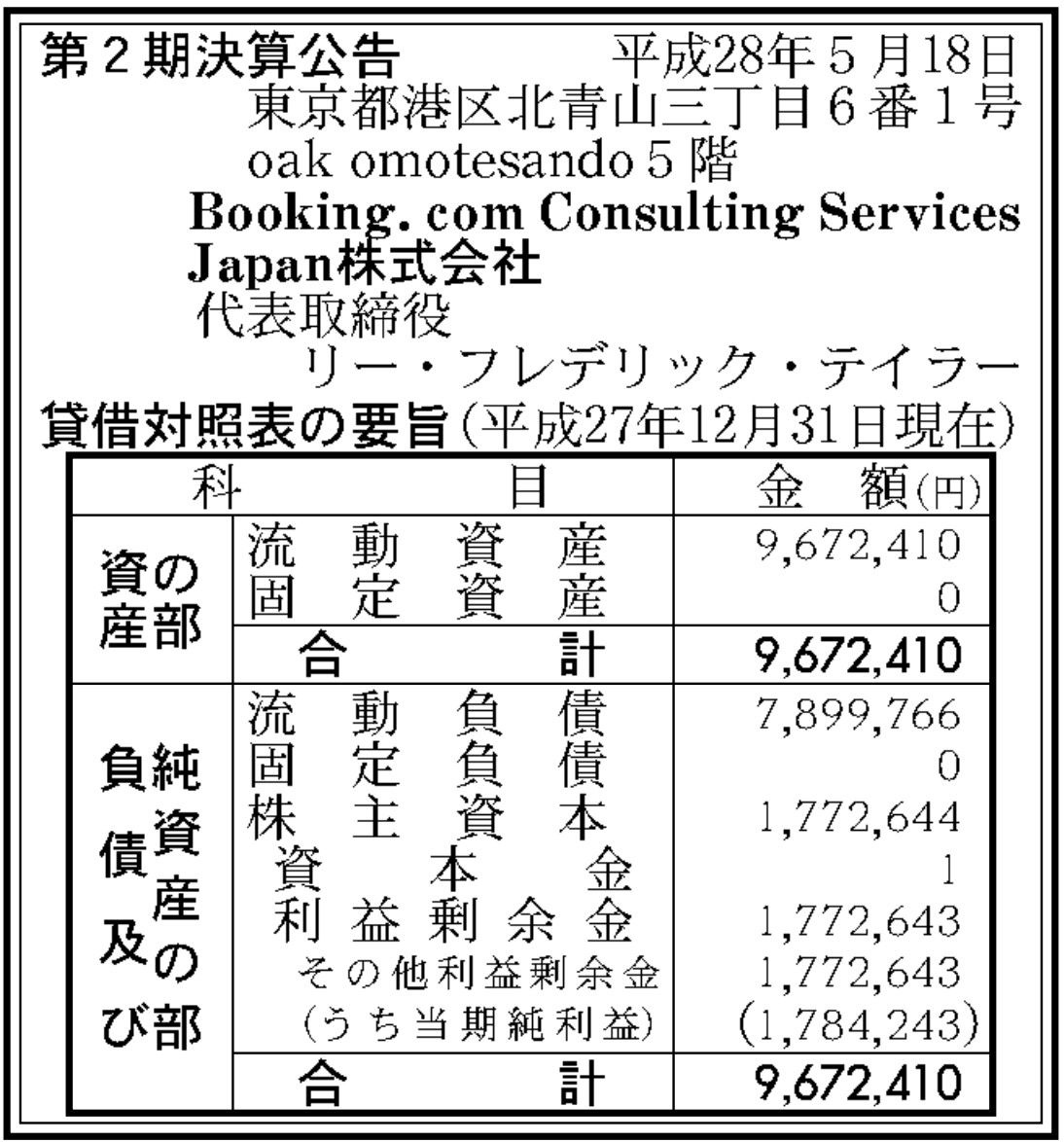 Booking.com Consulting Services Japan 決算公告(第2期)