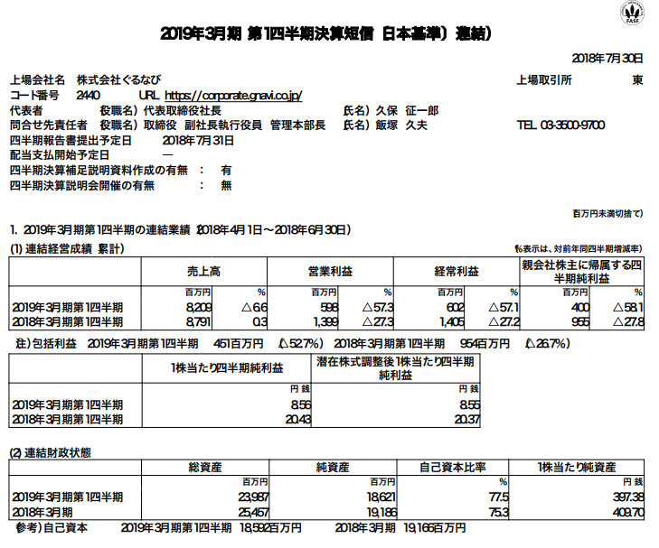 < ペッパーフードサービス 2018年12月期第2四半期決算