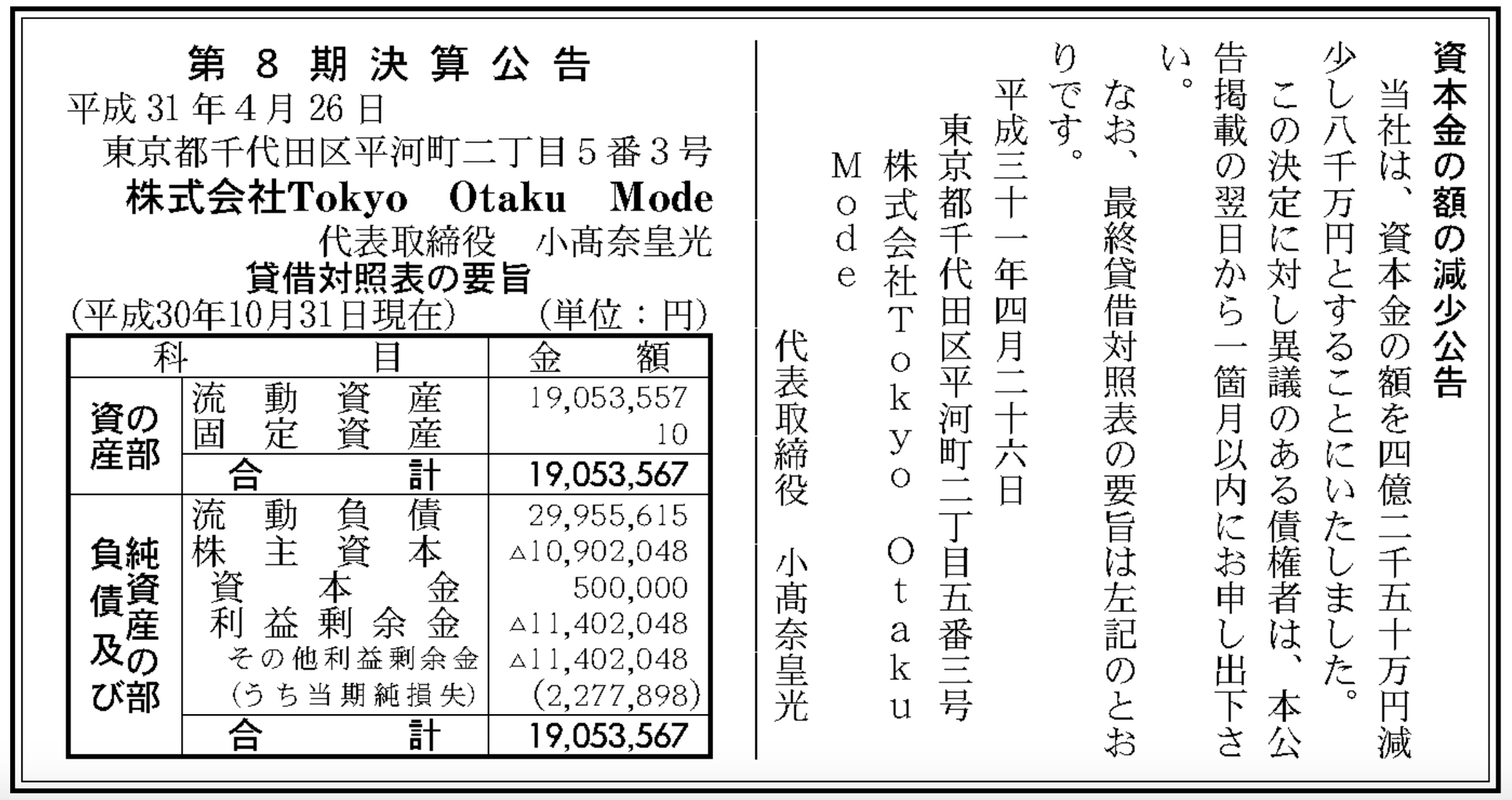 第8期決算公告