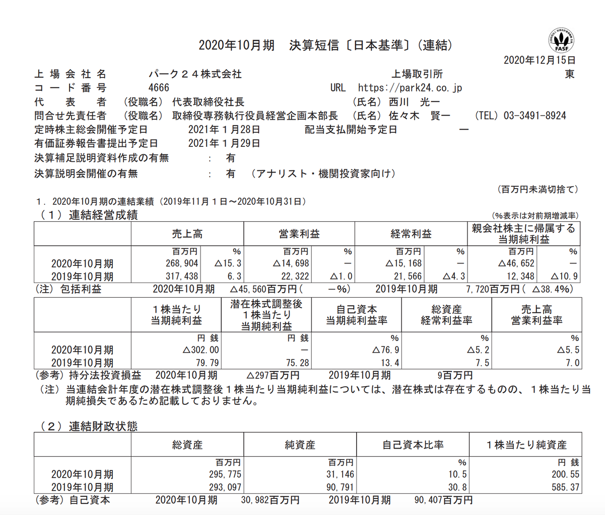 純利益:▲466億5200万円(前年同期123億4800万円の黒字)