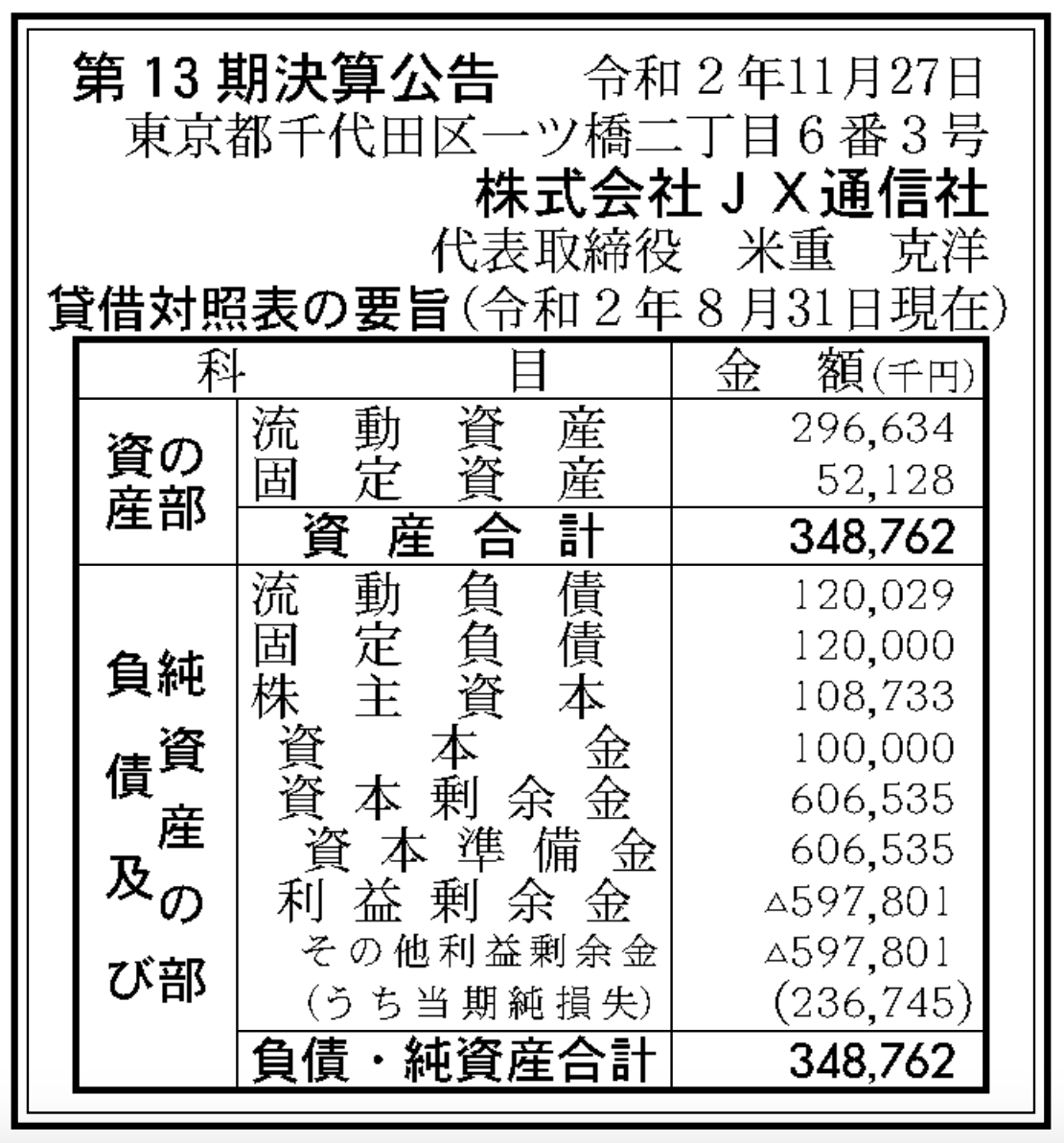 第13期 決算公告