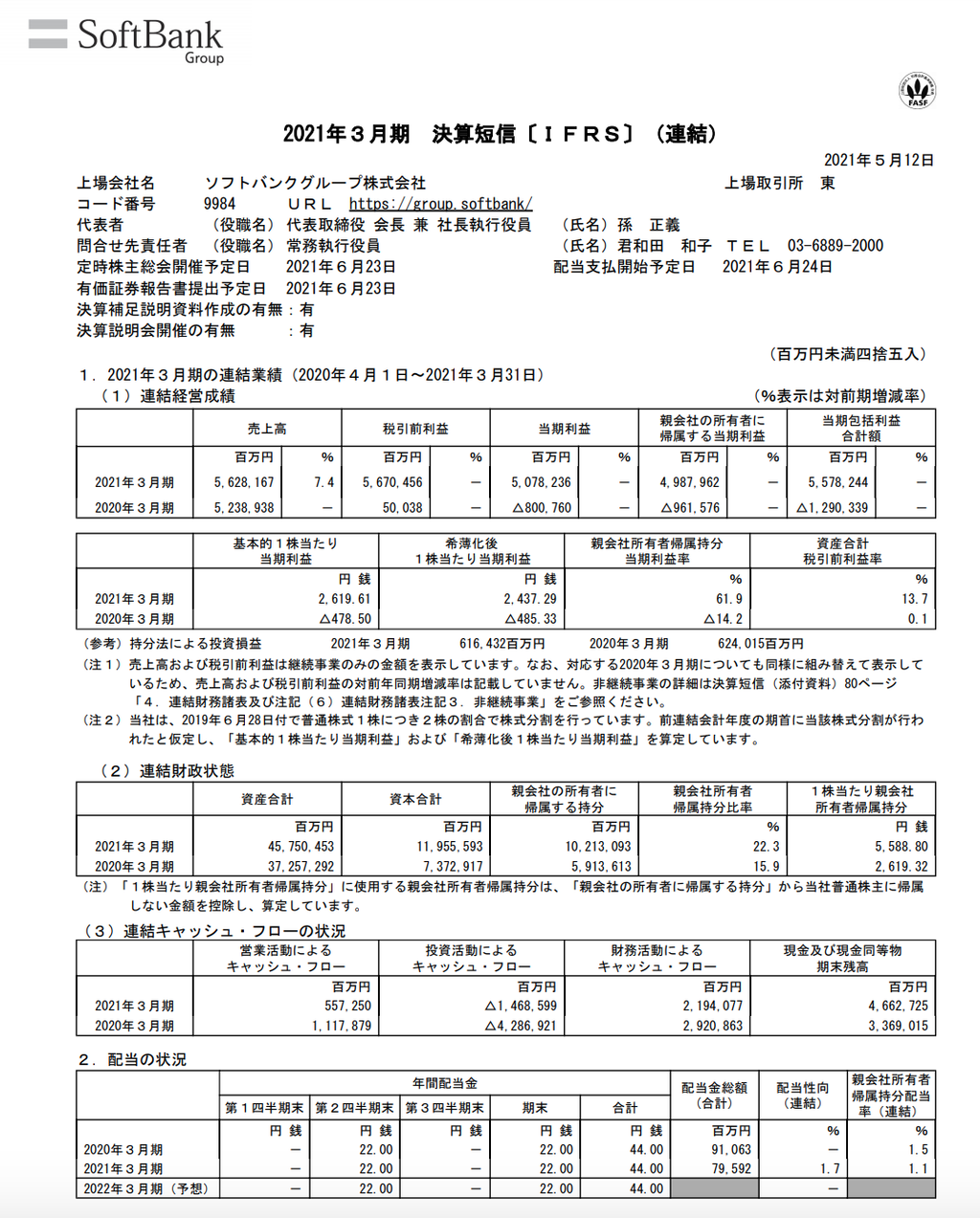 ソフトバンクグループ 2021年3月期通期決算