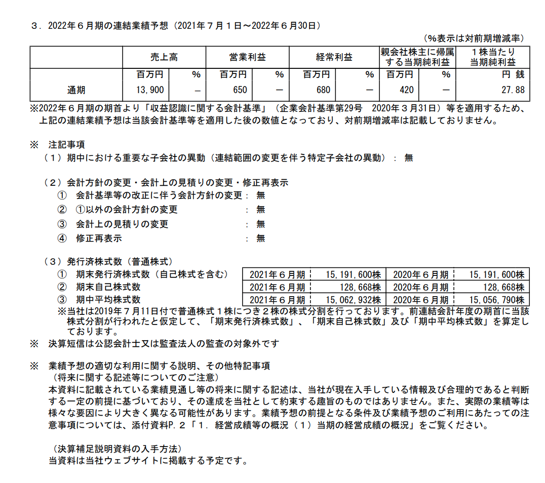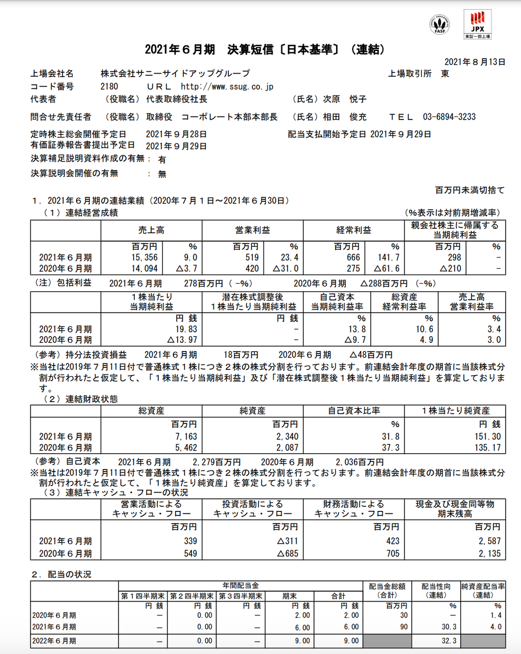 サニーサイドアップグループ 2021年6月期通期決算