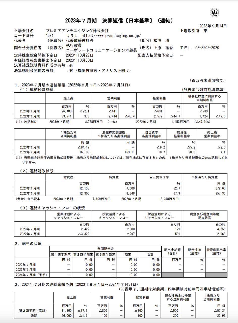 売上高:264億円(前年同期比-22.1%)営業利益:▲6億1100万円(前年同期は24億1400万円の黒字)経常利益:▲6億3100万円(前年同期は25億7200万円の黒字)純利益:▲7億3300万円(前年同期は14億2400万円の黒字)