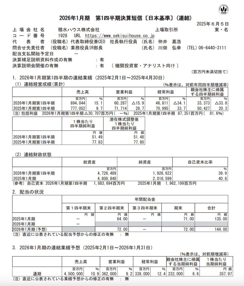 売上高:8940億4400万円(前年同期比+15.1%)営業利益:602億8700万円(同-15.9%)経常利益:468億1100万円(同-34.1%)純利益:333億7300万円(同-33.8%)