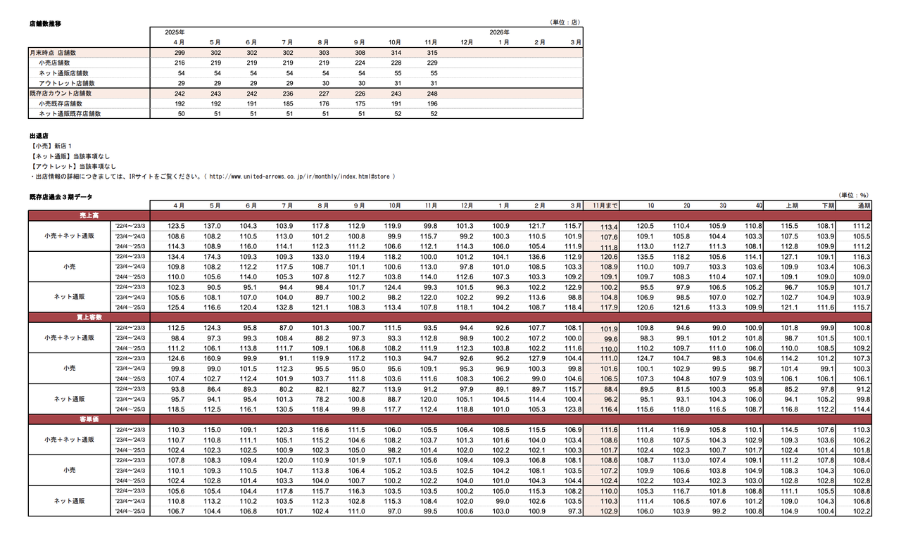 ・月次業績(2025年11月度)