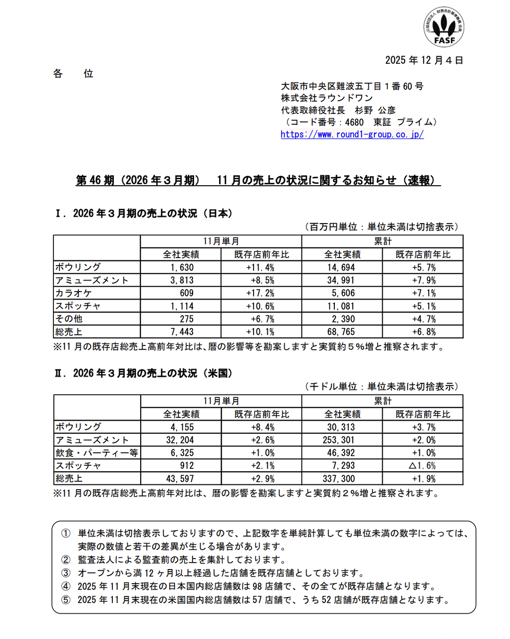 < 識学 2025年11月度プラットフォームサービス月次売上高