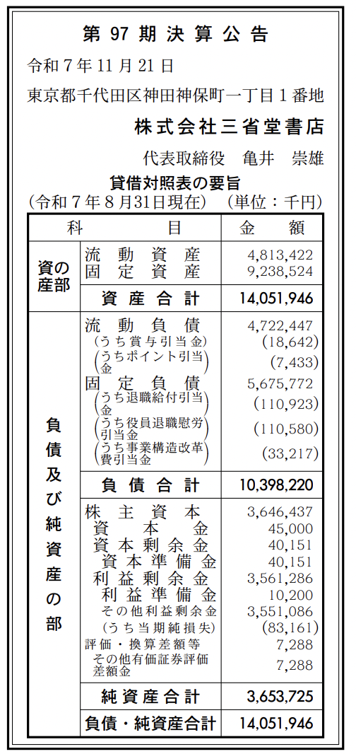 三省堂書店 決算公告(第97期)